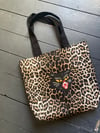 Mini leopard lined tote bag with tiger or rose patch